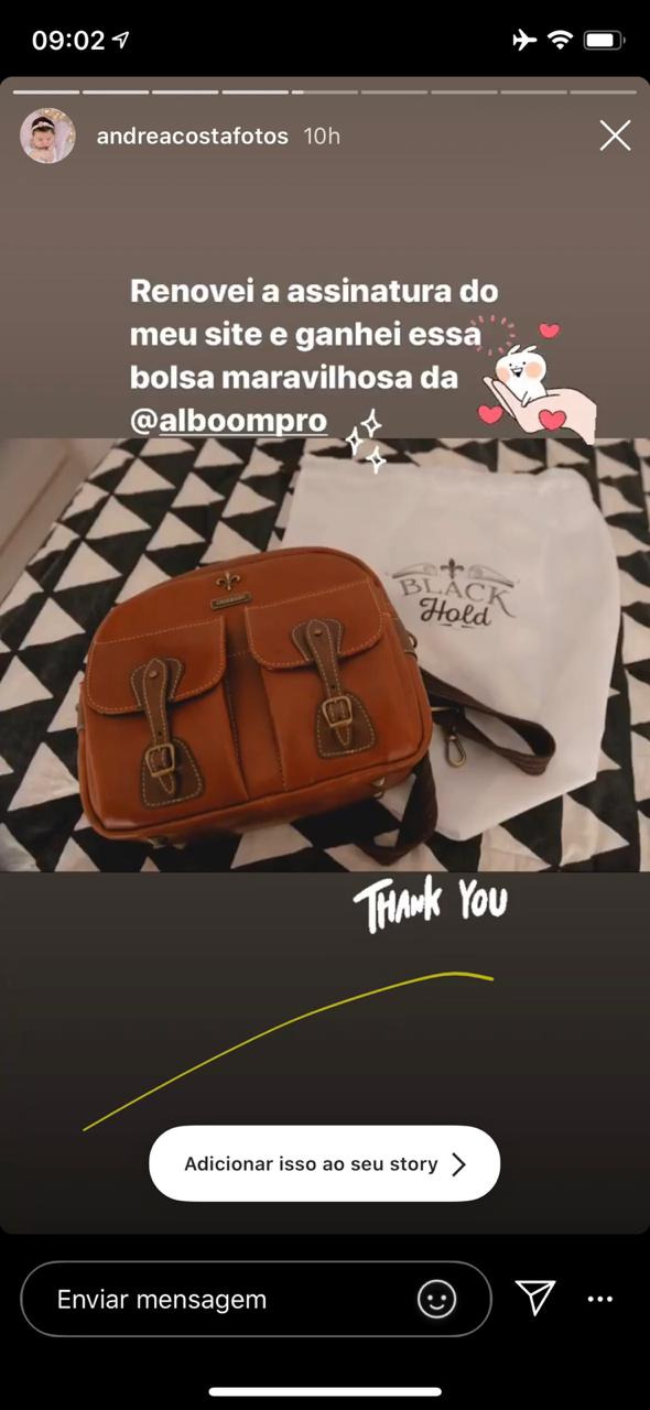 *Promoção válida até 23/10/2020 para renovações e novas assinaturas de 12 meses do Alboom Prosite no Plano Pro/Legacy. Você receberá um voucher com 100% de desconto para a Bag Hold da Black Hold e pagará apenas o frete, e também 5 cupons de desconto da La Madera no valor de R$200 cada para compras individuais em coleções.