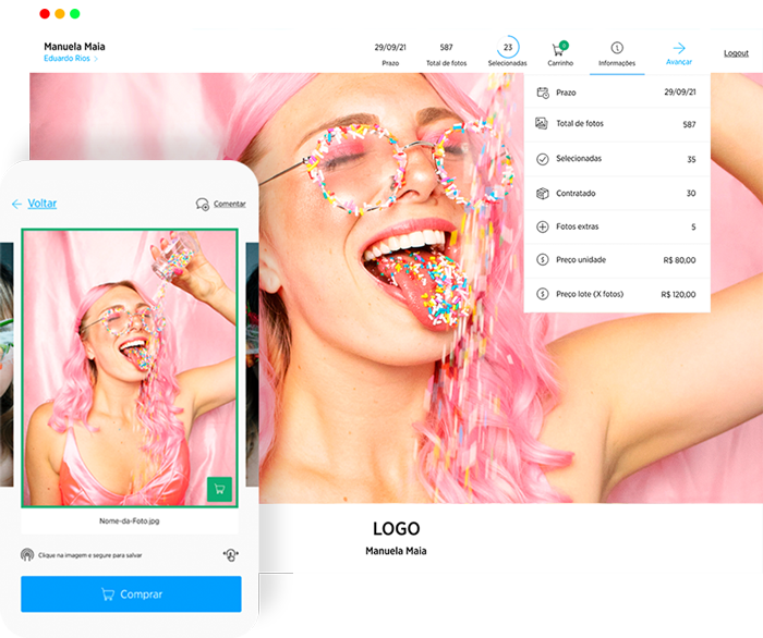 Sistema de aprovação e venda de fotos onde, em poucos minutos, o cliente seleciona e aprova as fotos que deseja. Além disso, no Alboom Proof você protege suas fotos com login e senha e ainda pode inserir marca d'água de segurança. Tudo de uma maneira simples e prática, deixando seu trabalho ainda mais profissional.