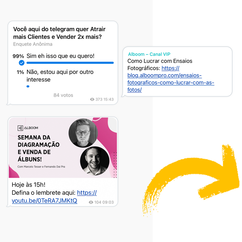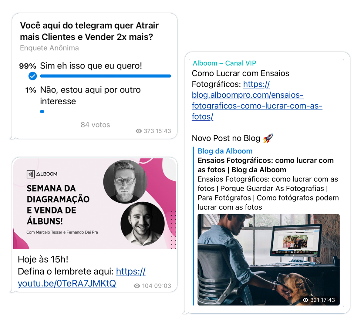 O grupo no Telegram é a maneira ideal para estreitar o relacionamento com os clientes e a Alboom.
